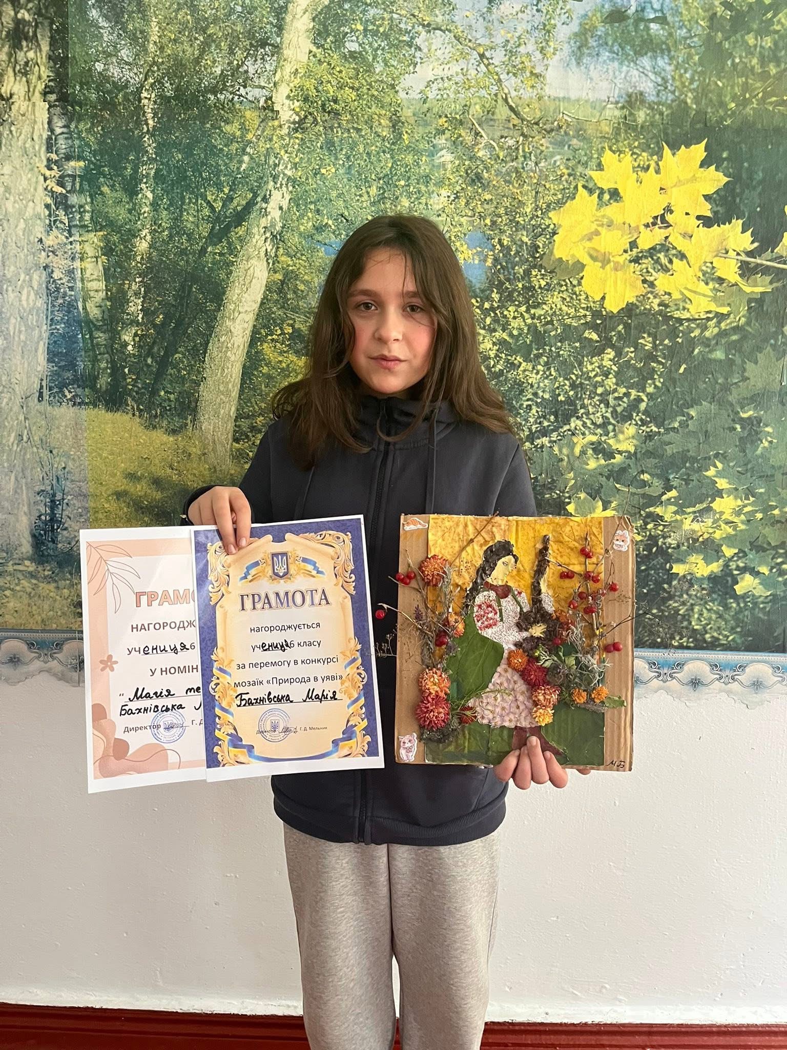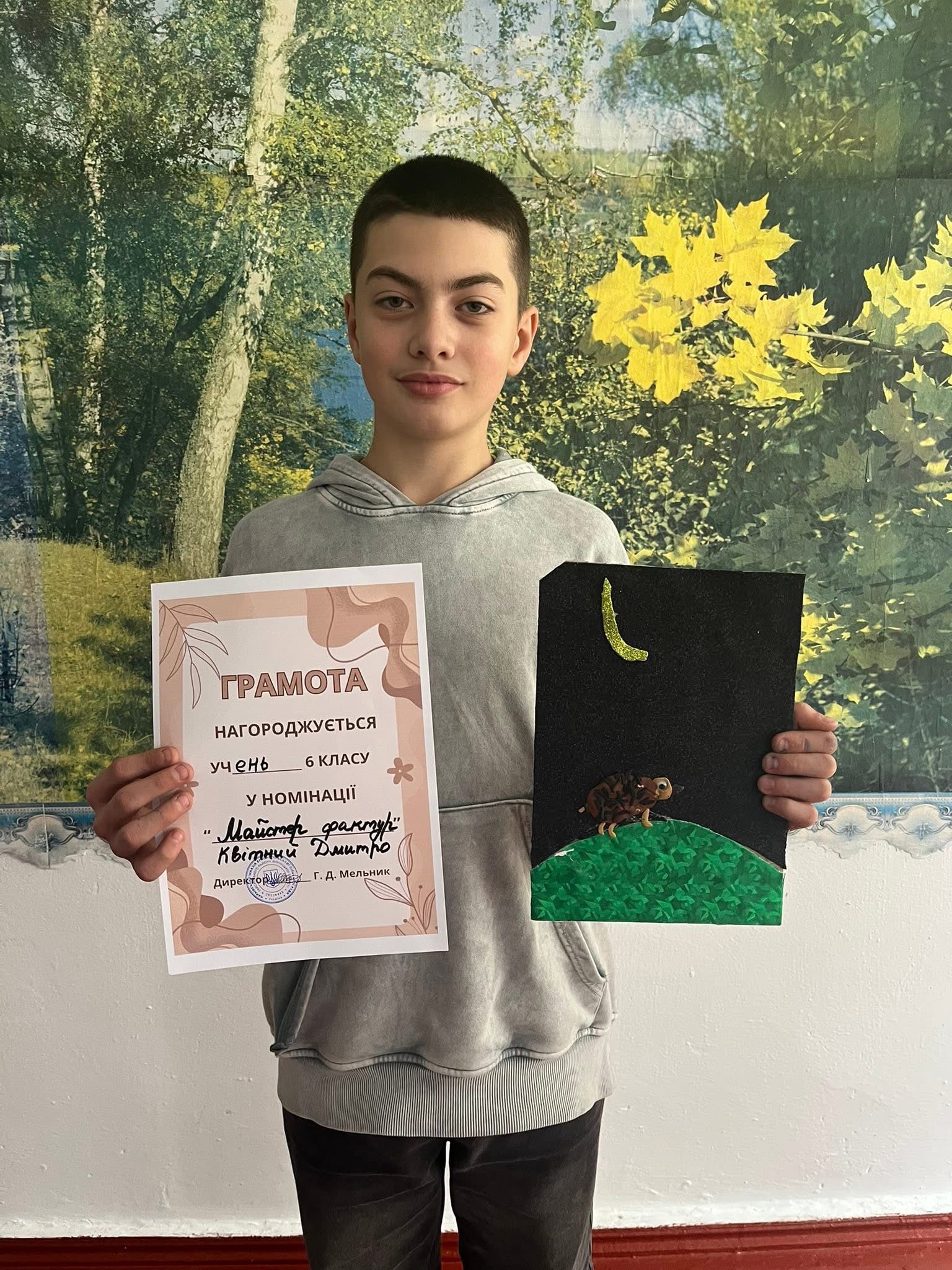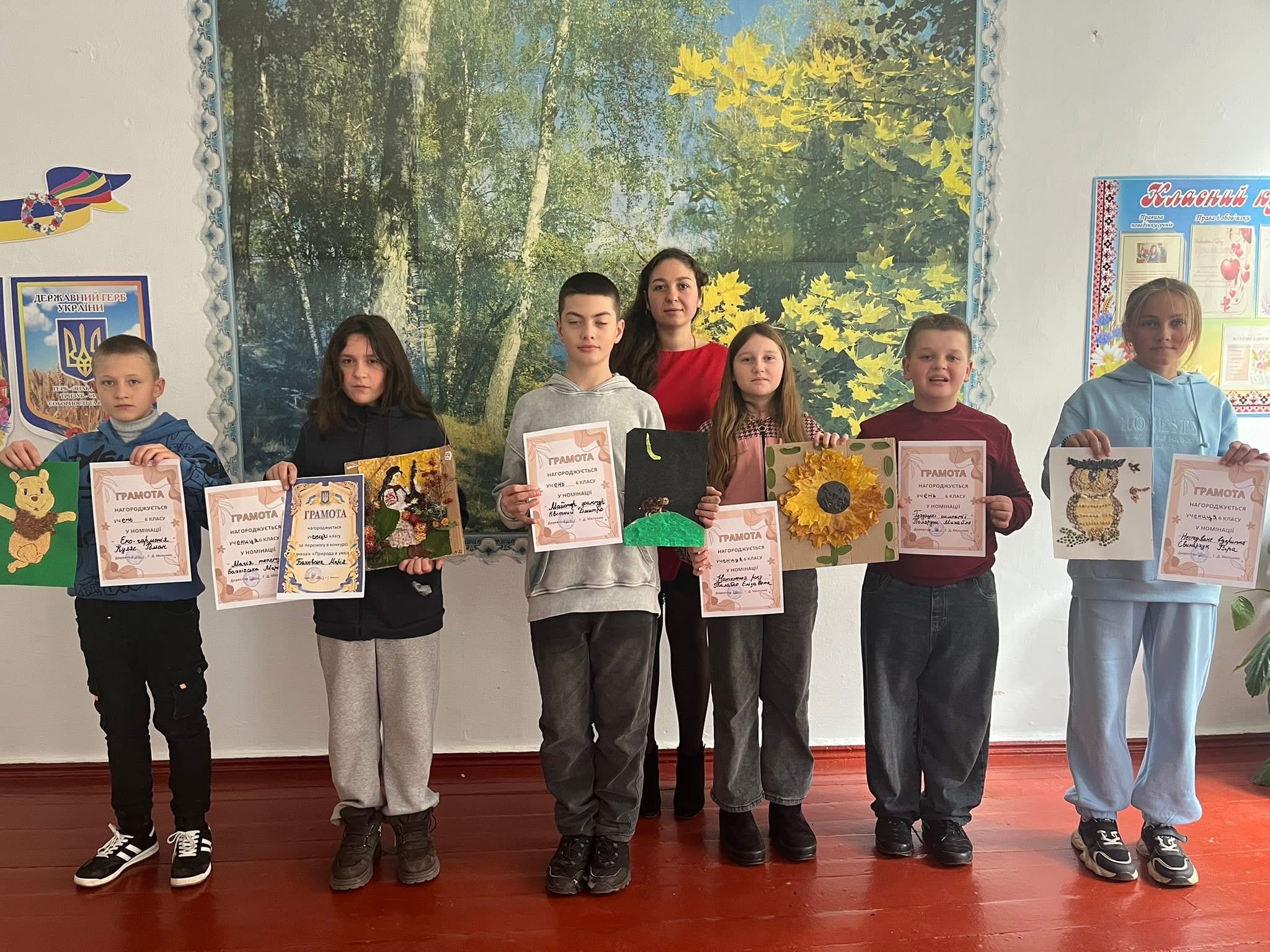 23 жовтня у 6 класі відбувся творчий конкурс мозаїк під назвою «Природа в уяві». Учні із захопленням поринули у світ мистецтва, фантазії та кольору. Кожна робота була особливою, адже школярі намагалися передати своє бачення краси. Діти продемонстрували неабияку старанність та креативність. За результатами конкурсу перемогу здобула Марія Бахнівська, яка вразила журі оригінальністю композиції та майстерністю виконання. Конкурс провела вчитель образотворчого мистецтва Грабова Ангеліна Дмитрівна, яка допомогла учням розкрити свої творчі здібності та повірити у власні сили.