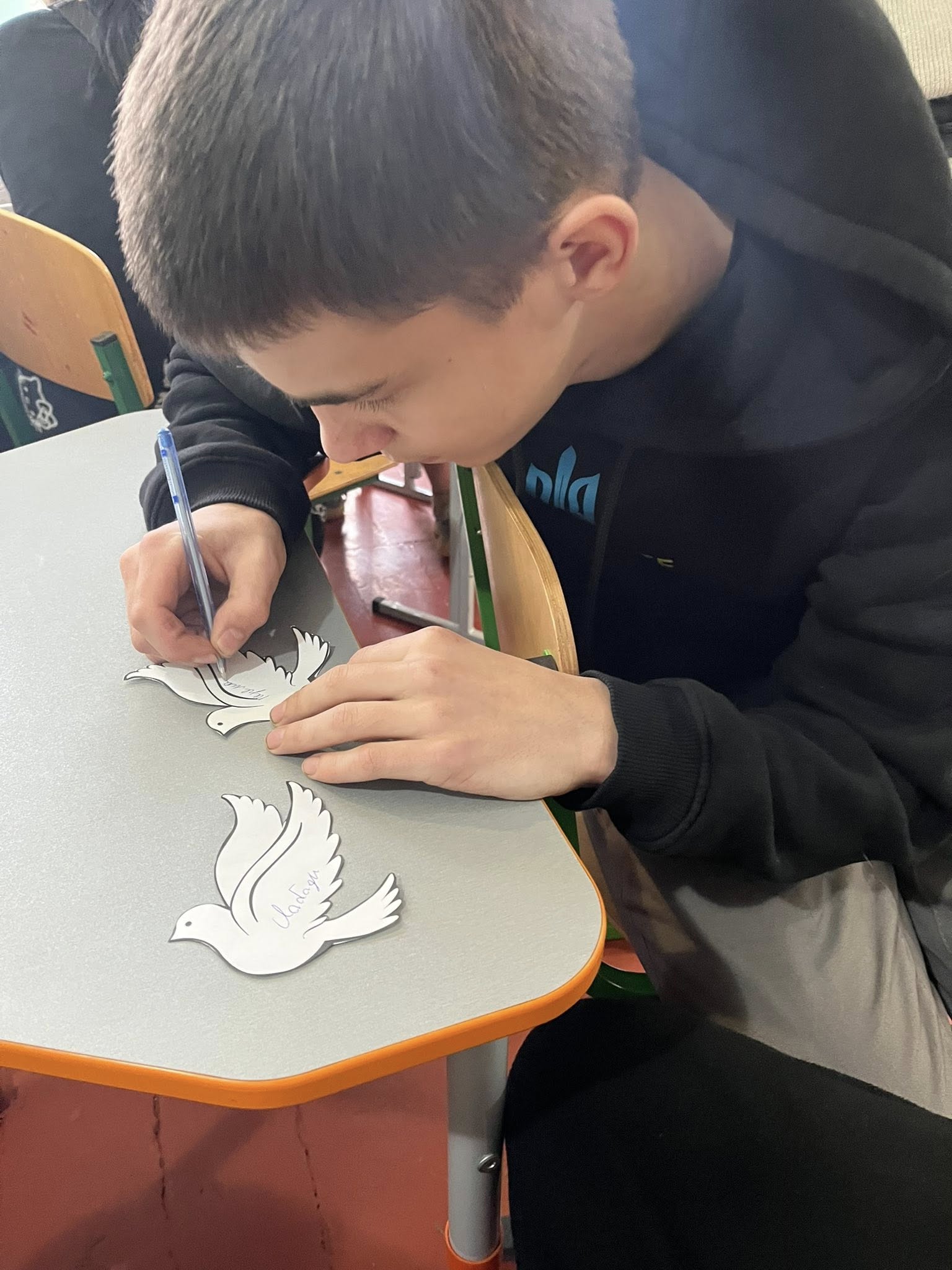 Особливо символічним був момент, коли учні створювали «голубів миру» та писали на них свої щирі побажання і слова підтримки нашим захисникам.