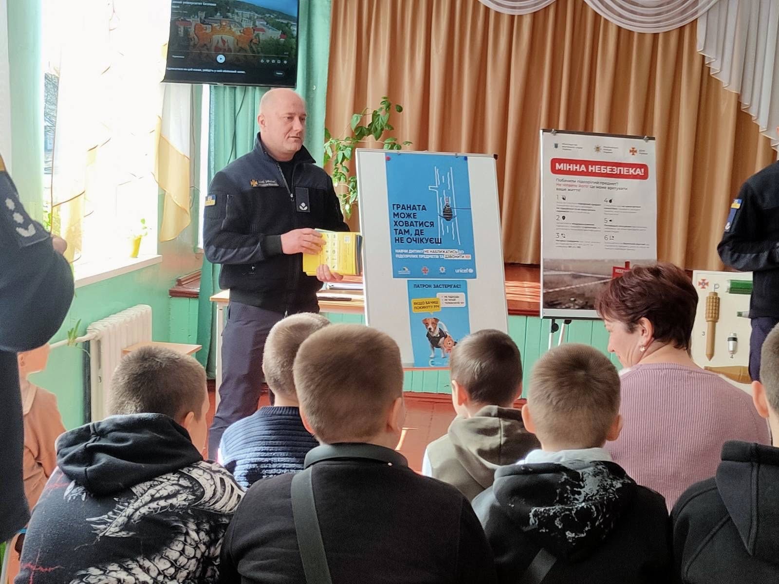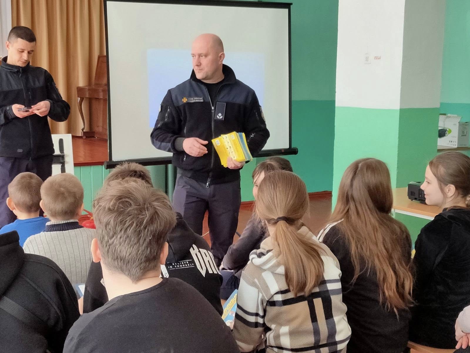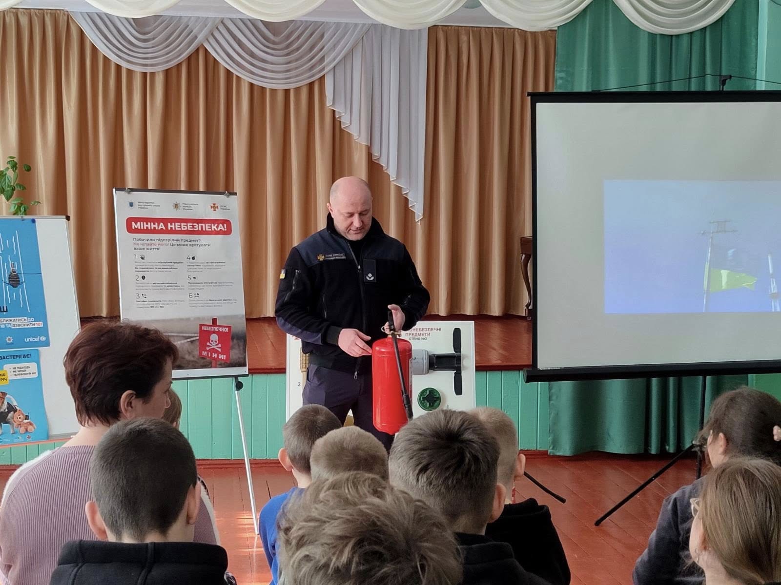 Фахівці провели пізнавальні бесіди з пожежної та мінної безпеки. Діти вкотре нагадали, як діяти у разі пожежі, чому не можна торкатися підозрілих предметів та як поводитися, щоб убезпечити себе і своїх близьких. Зустріч проходила в ігровій формі з використанням наочності, тому учні активно брали участь у розмові та з радістю відгадували загадки.